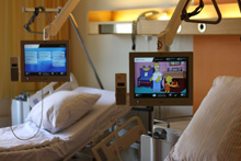 Die Nutzer sehen ihre Lieblingssendung ab sofort auf einem hochauflösenden 15-Zoll TFT-Display, das flexibel an der Decke aufgehängt ist und so individuell für einen optimalen Sehgenuss eingestellt werden kann. Vor allem die Bedienung und die Inhalte machen Spaß: Durch einen modernen Touchscreen lassen sich die Programme und Funktionen bequem und einfach wählen, ohne erst nach der Fernbedienung – die gibt es natürlich ebenfalls – suchen zu müssen. Das hat aber vor allem einen großen Vorteil bei einer weiteren Funktion des Systems: Denn per Touchscreen-Tastatur kann man zum Beispiel einfach E-Mails schreiben. So kann jeder Patient bequem nach Herzenslust im Internet surfen oder eine der anderen Funktionen nutzen.